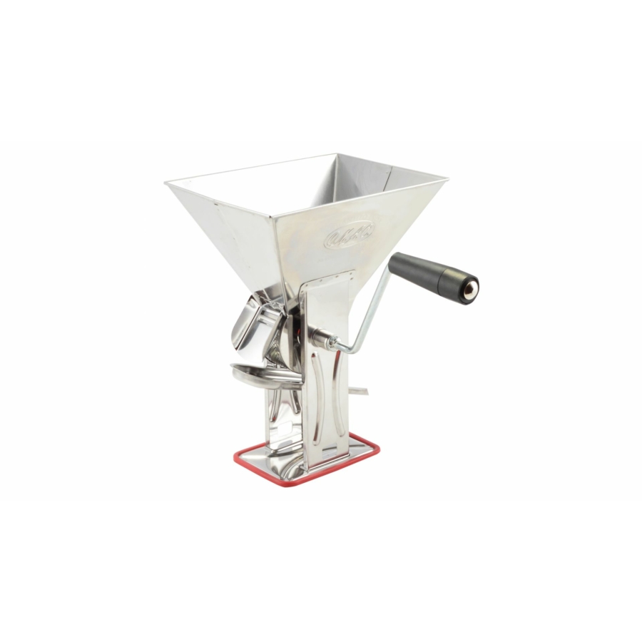 Mlynček na paradajky , tiež známy ako sitko na paradajky, možno použiť na výrobu paradajkového pratlakuČasti: rám, odpružená mlecia vložka, kľuka, upínacia skrutka, lievik na vypúšťanie šťavyMlynček oddeľuje šupku a dužinu paradajok. Paradajkový pretlak potečie dole „dlhším“ žľabom, zatiaľ čo šupka potečie „kratším“ žľabom nad ním, preto je vhodné dať misku na obe miesta.